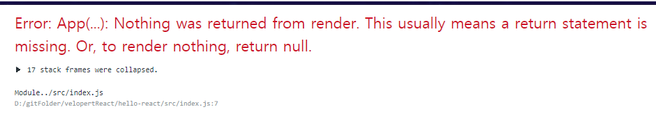 지금은 h1, h2 태그로 했지만 저 둘 태그 대신 div 2개를 사용해도 1개의 div로 그것들을 감싸줘야합니다. 그런데 리액트 컴포넌트에서 왜 이렇게 꼭 감싸주어야 할까요? 그것은 Virtual DOM에서 컴포넌트 변화를 감지해 낼 때 효율적으로 비교할 수 있도록 컴포넌트 내부는 하나의 DOM 트리 구조로 이루어져야 한다는 규칙때문입니다.