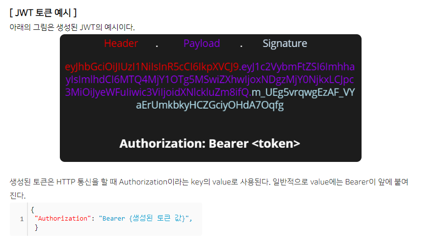 -페이로드 자체는 암호화 된 것이 아니라 base64로 인코딩된 것이다. 중간에 payload를 탈취하여 디코딩하면 데이터를 볼 수 있으므로 토큰에 중요 데이터는 넣지 않아야 한다.
