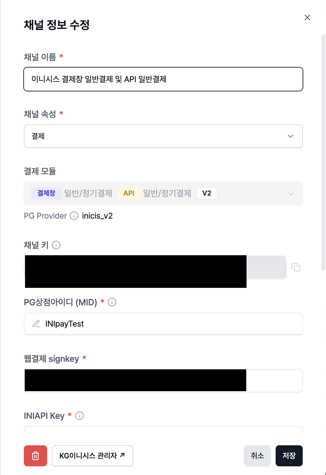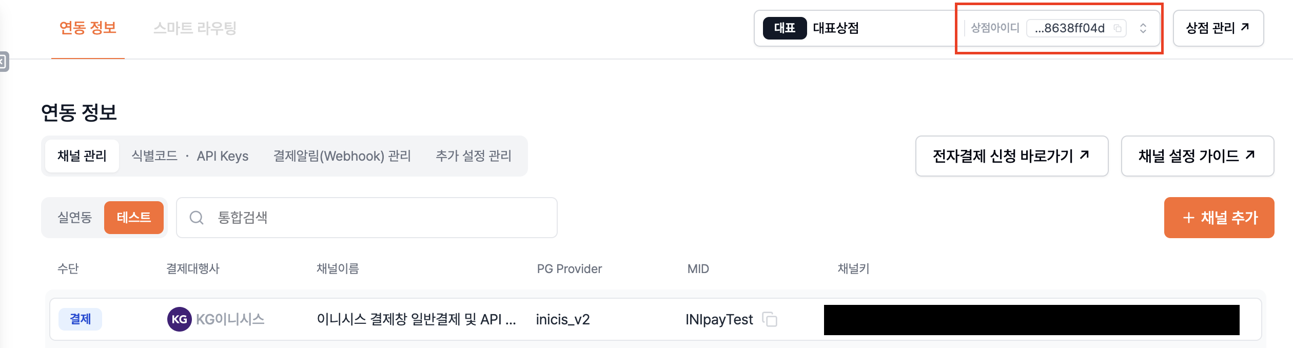 대충 요렇게 필요한 채널키와 상점 아이디가 생성이 된다.
