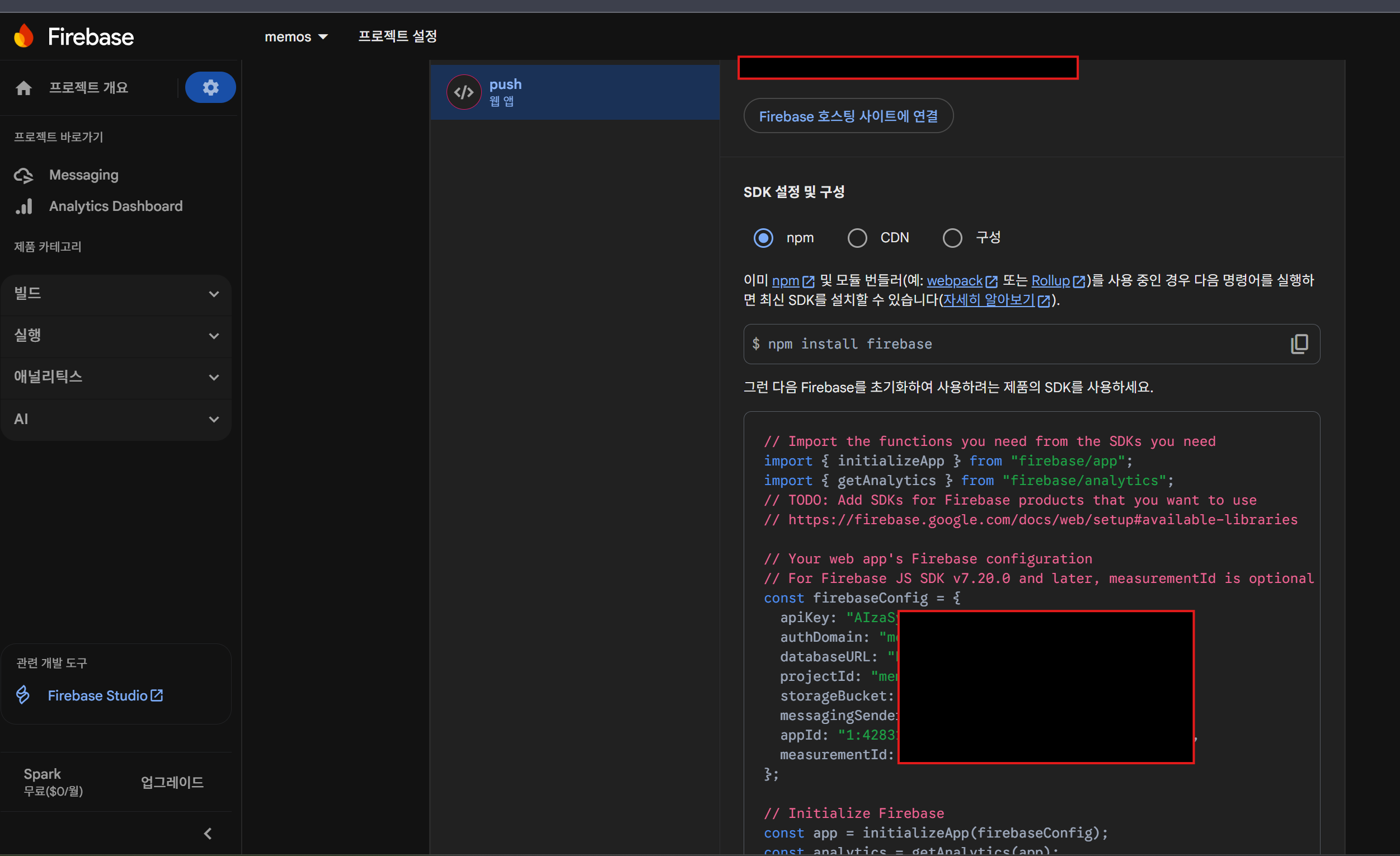 그러면 가이드대로 npm으로 firebase 설치해주고 firebaseConfig는 저장해줍니다.
